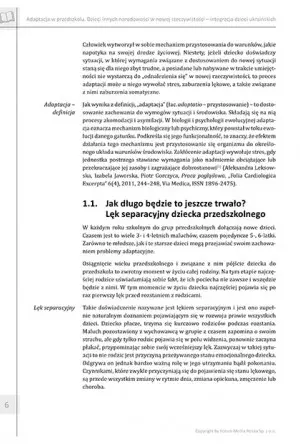 Opracowanie skupia uwagę na dzieciach wieku przedszkolnego i adaptacji w środowisku przedszkolnym, jednak uniwersalność porad i wskazówek daje możliwość wykorzystania ich w środowisku szkolnym. Prócz tego zawiera liczne scenariusze zajęć, podzielone według wieku, dzięki czemu zabawy i gry są atrakcyjne, dostosowane do poziomu intelektualnego dzieci. Nauczyciel przedszkolny lub opiekun, wykorzystując gotowe scenariusze może niemal natychmiast rozpocząć procedury adaptacyjne, oszczędzając przy tym czasu i mając poczucie „celności” swoich działań.