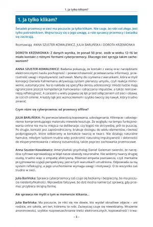 Świadek przemocy w sieci ma poczucie: ja tylko klikam. Nie czuje, że robi coś złego. Jest tylko pośrednikiem. Wojna toczy się o jego uwagę, a role sprawcy przemocy i świadka się zacierają. Rozmawiają ANNA SZUSTER-KOWALEWICZ, JULIA BARLIŃSKA i DOROTA KRZEMIONKA