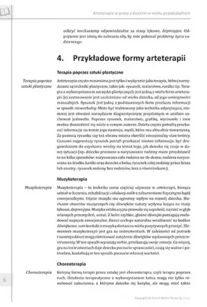 Scenariusze zajęć są niezwykle zróżnicowane i zawierają ćwiczenia, gry oraz zabawy z udziałem narzędzi artystycznych. Każdy scenariusz został wnikliwie opisany, by nauczyciel mógł krok po kroku realizować przedstawiony program, dążąc do przedstawionych na początku celów, jakie powinien osiągnąć. To uporządkuje system pracy, zaoszczędzi czasu na opracowanie nowych form aktywacji dzieci i wesprze ich całościowy rozwój emocjonalny. Opracowanie może stać się również domową formą urozmaicenia nauki w domu lub być dodatkiem, do aktywnego spędzania wolnego czasu.