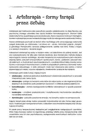 Pozycja zawiera opis czterech najpopularniejszych metod arteterapii. W drugiej części książki znajdziemy Kalendarium Arteterapeutyczne z nietypowymi świętami przedszkolnymi, a także 10 scenariuszy zajęć artetetapeutycznych.