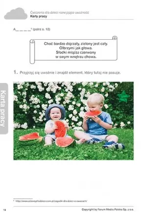 Karty pracy adresowane są do uczniów edukacji wczesnoszkolnej. Do każdego zestawu ćwiczeń należy wcześniej przygotować: przybory do pisania, kredki oraz skopiowane karty dla każdego dziecka. Karty pracy podzielone są tematycznie. Ćwiczenia zostały ułożone w takiej kolejności, aby zadania łatwiejsze i trudniejsze przeplatały się ze sobą. Mogą być stosowane jako materiał utrwalający wiadomości z edukacji polonistycznej i matematycznej w klasach I–III szkoły podstawowej.