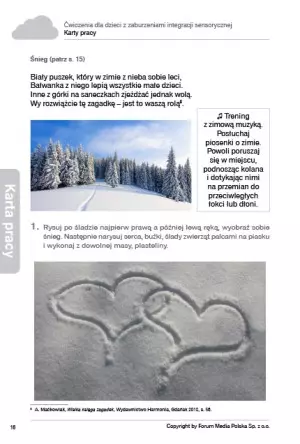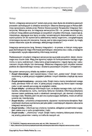 Dzieci, które wykazują zaburzenia integracji sensorycznej, muszą nieustannie doskonalić swoje umiejętności na różne sposoby. Prezentowane ćwiczenia i metody mogą być wykorzystywane zarówno podczas pracy indywidualnej, jak i grupowej. Znajdą swoje zastosowanie również w trakcie zajęć wyrównawczych, korekcyjno-kompensacyjnych, świetlicowych, w szkole oraz w domu.