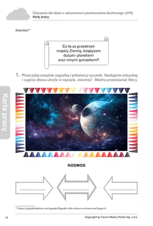 ✔ Zestaw ćwiczeń i kart pracy – aż 9 tematycznych kart pracy, w tym ćwiczenia oparte na motywach kosmosu, które uczą poprzez zabawę.