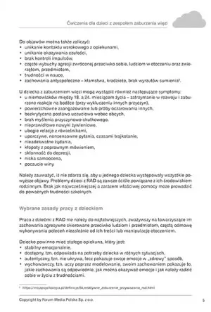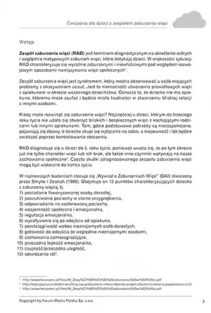 Publikacja porusza istotę problemu Zespołu Zaburzenia Więzi. Pokazuje, z jakimi problemami styka się osoba dotknięta tym zaburzeniem, a także jak można jej pomóc. W ćwiczeniach znajdziesz aż 55 ciekawych i zróżnicowanych zadań, takich jak: