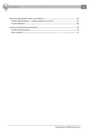 - Otrzymasz gotowy zestaw materiałów, który ułatwi codzienną pracę w przedszkolu – scenariusze zajęć, zabawy rozwijające empatię, bajki edukacyjne oraz karty pracy dla dzieci i rodziców. Wszystko dopasowane do potrzeb dzieci w wieku przedszkolnym.