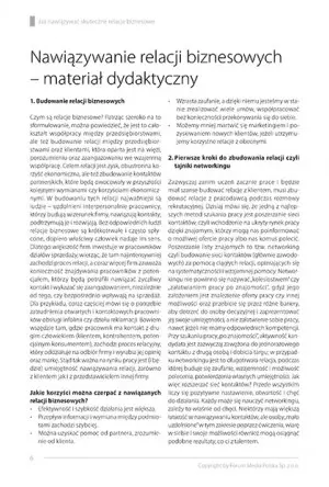 „Nawiązywanie relacji biznesowych” to publikacja, dzięki której uczniowie szkół ponadpodstawowych przyswoją sobie podstawowe zasady komunikowania się z klientem – również tym „trudnym”, dowiedzą się, w jaki sposób pozyskać, a następnie utrzymać wartościowe kontakty. Dzięki temu uczniowie z większą świadomością biznesową wkroczą za kilka lat na rynek pracy.
