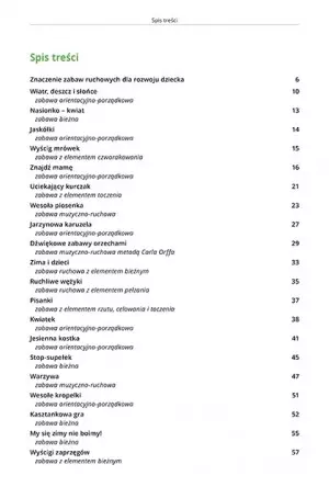 Zabawy mają na celu całkowite zaktywizowanie dzieci. Ćwiczenia zawierają elementy bieżne, skoki, rzuty, celowanie, toczenie się, wspinanie, czworakowanie, pełzanie i śpiew. Dzięki przemyślanym scenariuszom i dokładnym opisom ćwiczeń, zabawy i zajęcia są w pełni bezpieczne, wykorzystując maksymalny potencjał fizyczny dzieci.