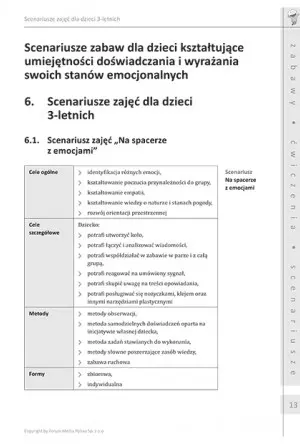 Scenariusze zajęć są bardzo łatwe do realizacji, gdyż zawierają dokładny opis działań, wskazują cele, jakie należy osiągnąć i potrzebne narzędzia dydaktyczne potrzebne do przeprowadzenia lekcji. Dzięki atrakcyjnemu programowi i licznym obrazkom, dzieci chętnie przystąpią do zajęć i z pełnym zaangażowaniem będą wykonywać polecenia.