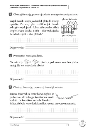 Odpowiednio dobrane zadania, dostosowane do etapu rozwojowego ucznia, sprawią, że dodawanie, odejmowanie, mnożenie i dzielenie w zakresie 100 staną się operacjami wykonywanymi z łatwością. Dziecko nabędzie umiejętności wykonywania w pamięci prostych obliczeń, nauczy się odpowiednio używać swoich zdolności w życiu codziennym dzięki zadaniom z treścią i usprawni grafomotorykę . Ćwiczenia zawarte w publikacji pobudzają umiejętność logicznego myślenia i kształtują aktywność umysłową dziecka.