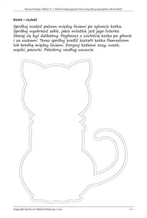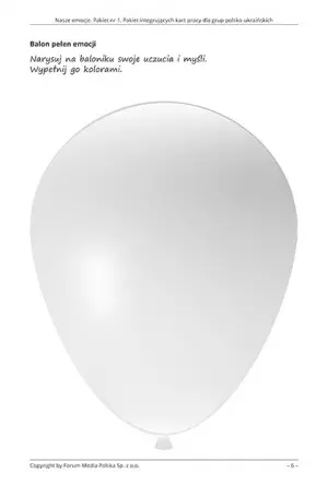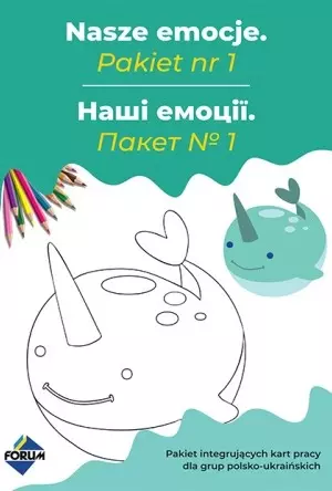 Publikacja zawiera wysokiej klasy karty pracy, przeznaczone dla dzieci w wieku przedszkolnym. Można ich używać zarówno do pracy grupowej, jak i indywidualnej. Zostały one dodatkowo przetłumaczone na język ukraiński, dzięki czemu mają charakter integracyjny. Dzięki pakietowi „Nasze emocje” rozwiniesz inteligencję emocjonalną dziecka, pomożesz mu zrozumieć siebie i swoje uczucia, pokażesz dziecku, jak może radzić sobie z trudną dla niego sytuacją i zapoznasz je z podstawowymi zasadami życia w grupie rówieśniczej i różnorodnej. Karty pracy mają charakter interdyscyplinarny. Dziecko prócz wiedzy o emocjach, będzie miało okazję ćwiczyć umiejętności matematyczne, kolorowanie i grafomotorykę.