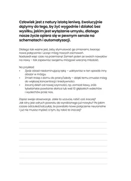 - Na każdy dzień przygotowane jest krótkie ćwiczenie/ ciekawostka/ łamigłówka, które z każdym kolejnym krokiem przybliżą Cię do pozytywnych zmian w Twoim życiu,