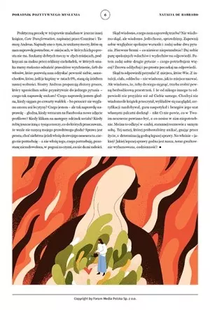 „Poradnik pozytywnego myślenia” to zbiór 10 felietonów – poruszających i wskazujących, co można w sobie zmienić, by mocniej czerpać z życia. Ciekawe historie, napisane przez doświadczoną psycholożkę, pokażą, w jaki sposób szukać w życiu tego, co nas zbuduje.