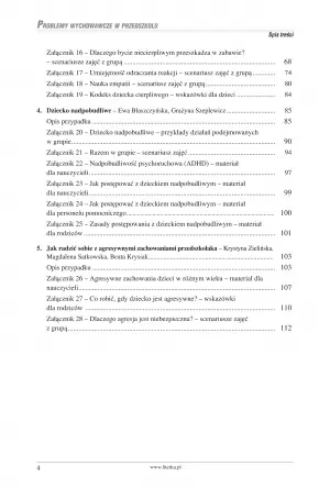 Mimo że poradnik jest skierowany do opiekunów grup przedszkolnych, stanie się praktyczną pomocą dla rodziców. Szczególnie jeśli pociecha wykazuje nadpobudliwość ruchową, emocjonalną lub zaburzenia sensoryczne. Odpowiednie podejście do dziecka, które dopiero rozwija swoje emocjonalne i ruchowe postrzeganie świata, może być kluczem do jego skupienia, koncentracji i efektywnego przyswajania wiedzy. Oprócz tego będzie świadome swoich potrzeb i będzie wiedziało, jak najlepiej je egzekwować, bez naruszania zasad i norm społecznych lub wychowawczych, wyznaczonych przez rodziców.