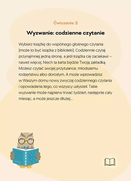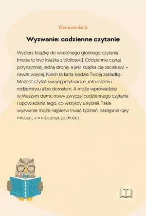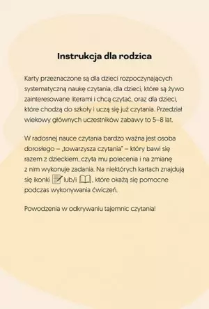 Podczas zabawy angażuje umysł i ciało, Wzmacnia więzi rodzinne, Szkoli umiejętności niezbędne w procesie edukacji szkolnej, Uczy się dostrzegać i rozumieć emocje, Uczy się podstaw samodoskonalenia, Pobudza i kształtuje naturalną potrzebę poszukiwania informacji, Uczy się podstaw poszukiwania informacji w rzetelnych źródłach. Nikt nie rodzi się z zamiłowaniem do czytania, dlatego niezbędne jest pokazanie dziecku, ile zalet niesie za sobą świat książek i lektur. Najlepiej zrobić to na własnym przykładzie, a niniejsze karty umożliwiają to w łatwy i szybki sposób. Każdy dzień może być nowym wyzwaniem, zabawą i doświadczeniem, które pozostawią po sobie ślad oraz uformują w dziecku naturalną potrzebę poszukiwania informacji.