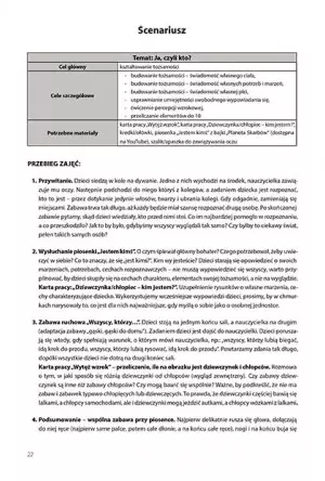 W trakcie zajęć możesz wykorzystać załączone karty pracy: „Wytęż wzrok” oraz „Dziewczynka/chłopiec – kim jestem?”, kredki, ołówki, piosenkę „Jestem kimś” z bajki „Planeta Skarbów”, szalik lub apaszka do zawiązywania oczu.