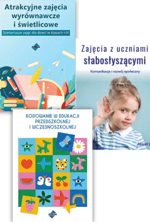 - Propozycje ćwiczeń, które angażują dzieci do aktywnego uczestnictwa w lekcjach i wspierają ich koncentrację i pamięć.