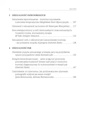 Dodatkowo w publikacji znajdziemy ogólne zasady edukacji seksualnej, a także problematykę prowadzenia jej przy powszechnym dostępie do pornografii, ogólne zasady przeciwdziałania przemocy seksualnej, zasady bezpiecznego korzystania przez dzieci z Internetu, zasady działania psychologa w przypadku zgłoszenia zaburzenia tożsamości płciowej u młodzieży oraz problemy doświadczane przez małżeństwo nieskonsumowane.