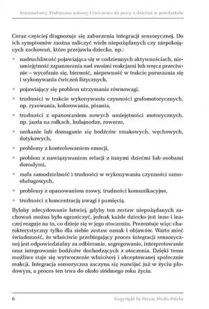 To, co często nastręcza trudności początkującym terapeutom, chcącym włączyć sensozabawy do repertuaru ćwiczeń, to z pewnością przygotowanie się do zajęć i stworzenie odpowiednich mas plastycznych, a także dobór warunków do konkretnych dzieci – wymagających wyciszenia lub przeciwnie, pobudzenia lub odwrażliwienia. W tym wszystkim pomoże Ci publikacja „Sensozabawy”!