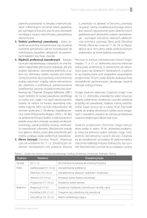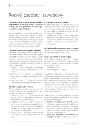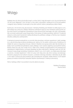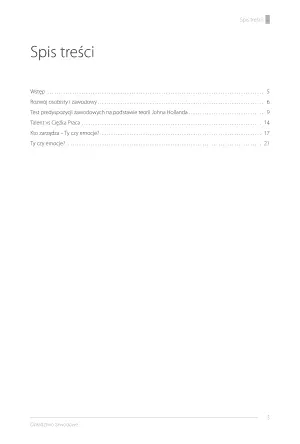 Niniejsze opracowanie to gotowe narzędzie wspomagające prowadzenie zajęć. Starannie przygotowane testy i arkusze ułatwiają pracę nauczycielowi, ale przede wszystkim uwypuklają predyspozycje ucznia. Na ich podstawie może poczynić już pierwsze kroki do doskonalenia swoich najważniejszych atutów, które przyczynią się do wyboru satysfakcjonującej pracy. Mimo że publikacja skierowana jest do nauczycieli, rodzice, którzy z pewnych powodów decydują się na naukę domową ucznia, powinni uzupełnić swoje pomoce dydaktyczne o niniejsze testy i scenariusze, by wspomóc długą drogę do kariery zawodowej dziecka.
