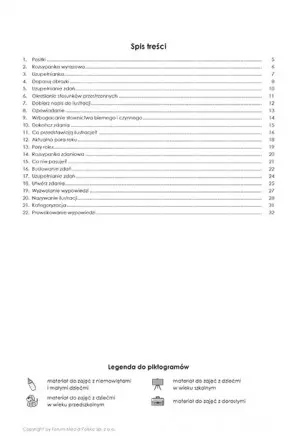 Publikacja zawiera 22 karty pracy. Są one oznaczone piktogramem oznaczającym, że nadają się do pracy z dziećmi w wieku szkolnym i osobami dorosłymi, dotkniętymi afazją. W pozycji znajdziesz zadania, które ćwiczą określanie stosunków przestrzennych, budowanie zdań i ich uzupełnianie, wzbogacają słownictwo bierne i czynne, wyzwalają wypowiedzi i pomagają w kategoryzowaniu.