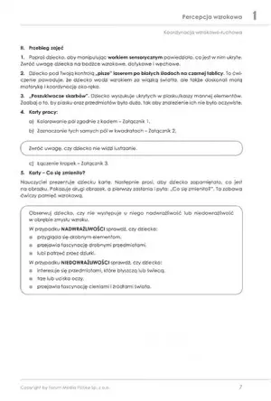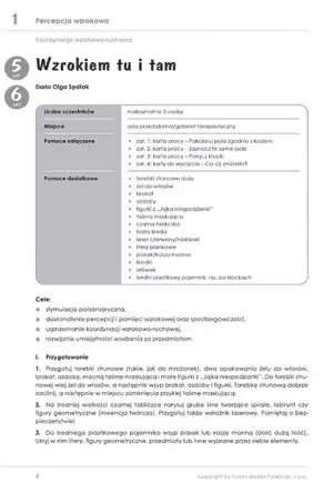 Karty ćwiczeń nie tylko zawierają krok po kroku organizację i przebieg zajęć, ale wskazują główne cele, jakie powinny zostać zrealizowane. Dzięki temu nauczyciel/opiekun wie, na czym skupić swoją uwagę i kłaść nacisk podczas wspólnej zabawy.
