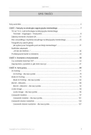 Książka zawiera także omówienie technik edukacyjnych i ewaluacyjnych oraz 7 kart pracy z częścią przeznaczoną dla ucznia i nauczyciela.