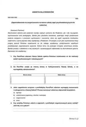 • Czy szkoła spełnia oczekiwania rodzica?